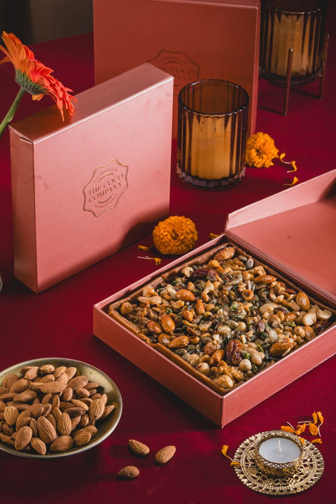 Topped with caramelized hazelnuts, almonds, pistachios & cashews